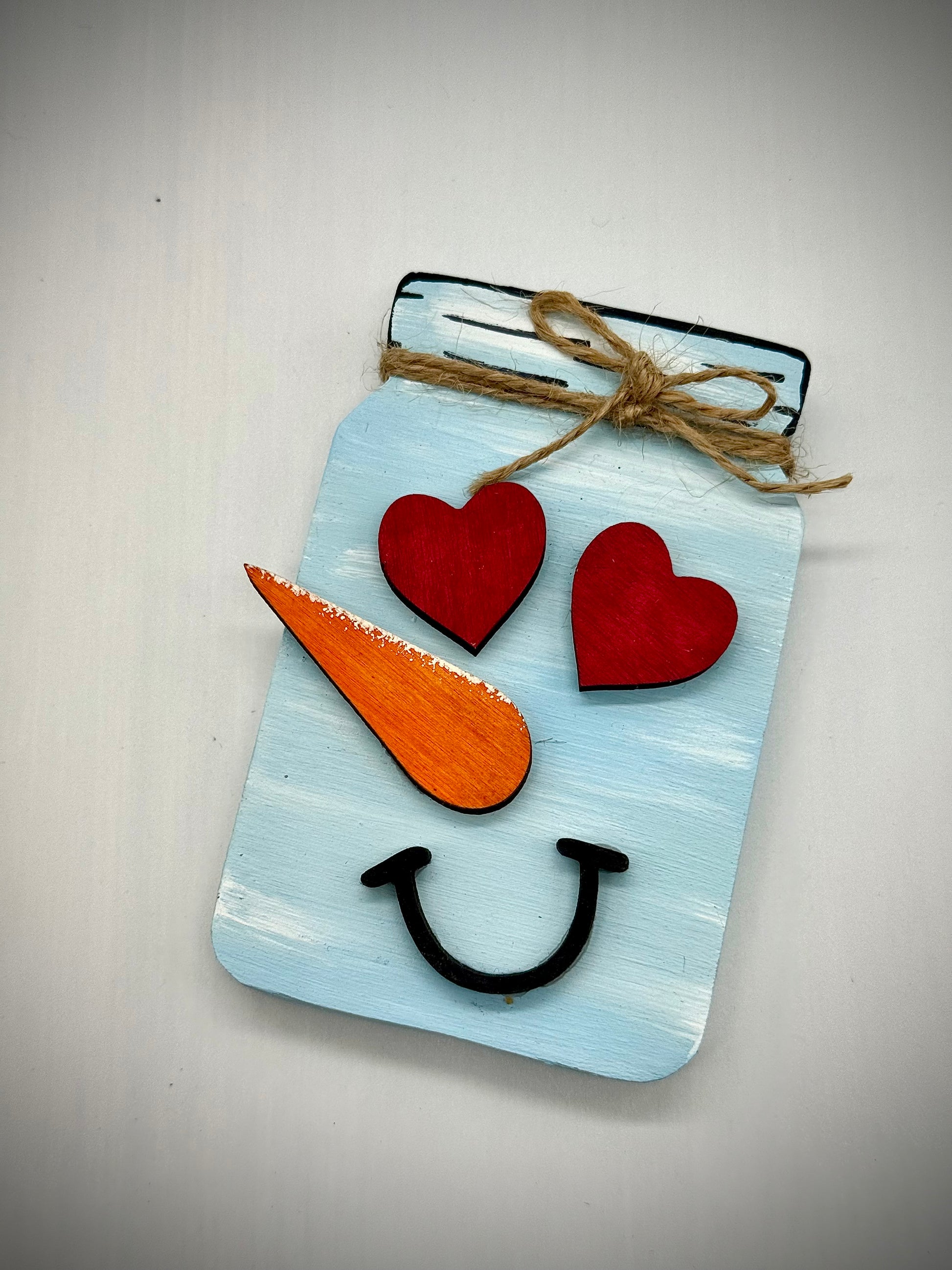 This kit includes 27 total pieces. Use these snowman blanks to make ornaments, signs, snowmen decor, and more. These pieces range in size from 1/2 - 3 1/2 inches. Pair these shapes with our 4 inch ornaments, chunky mason jar, or snowman shape.